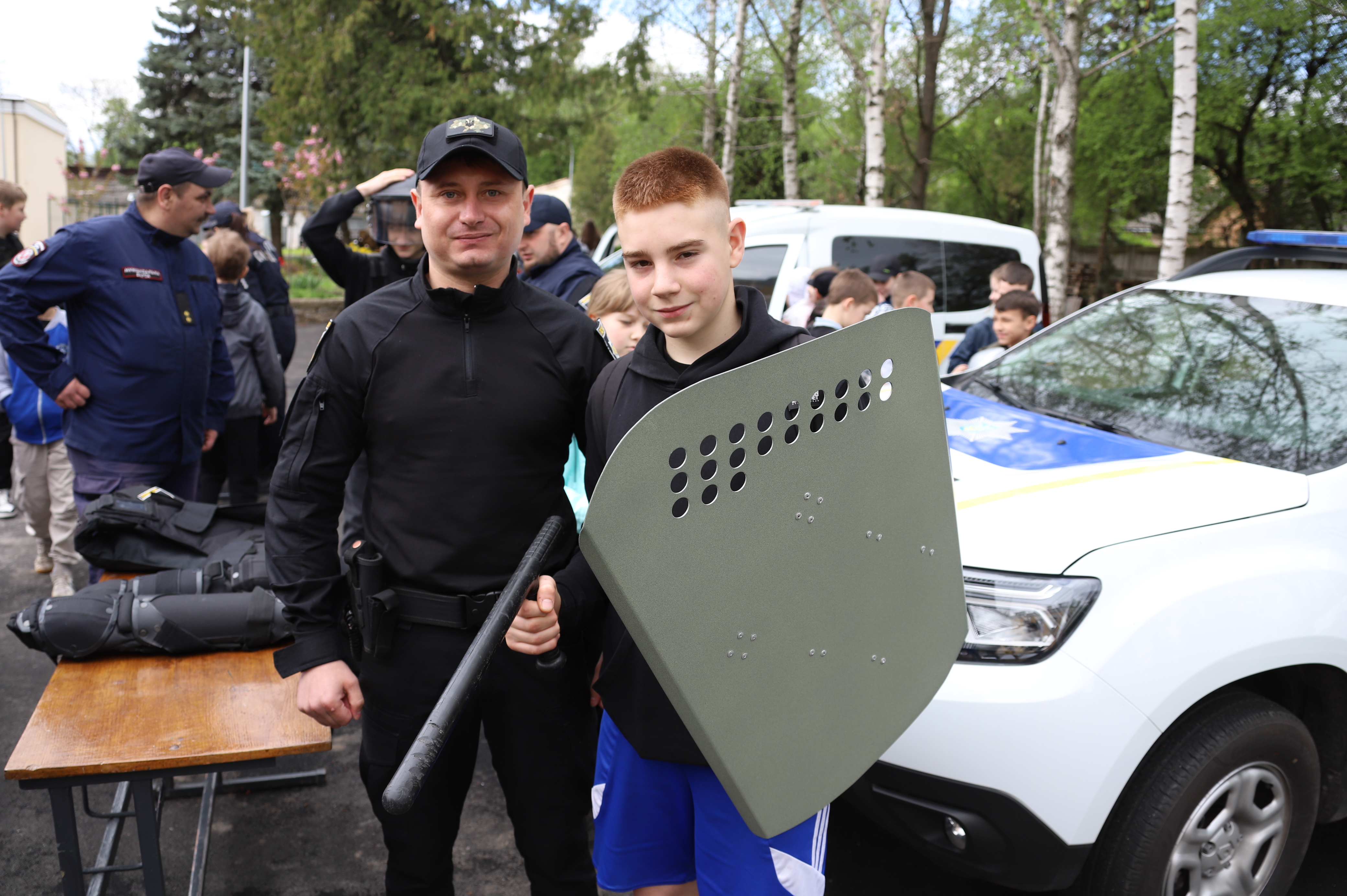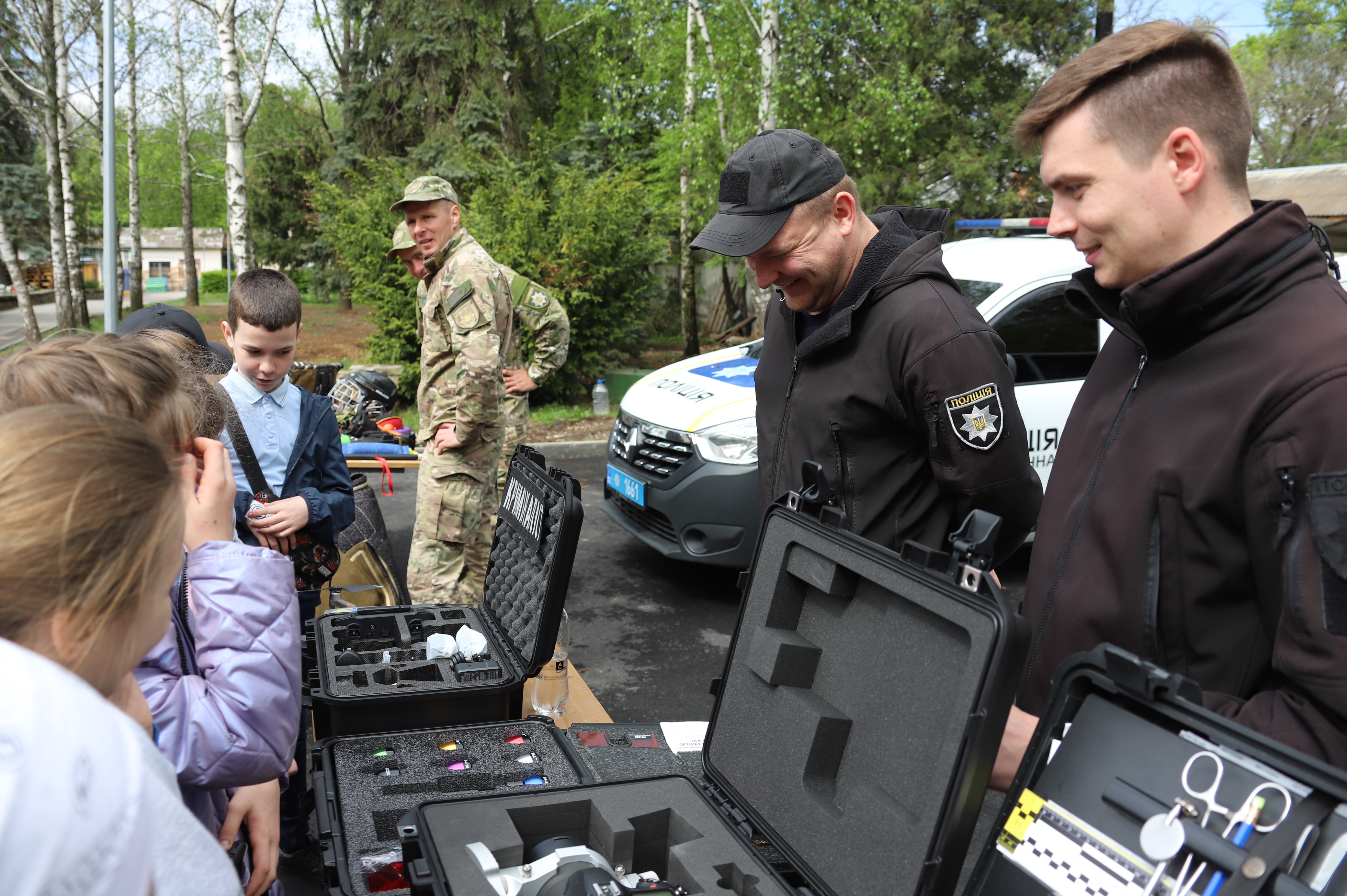 Особливості своєї роботи продемонстрували кінологи, криміналісти та вибухотехніки. Дітям показали професійне оснащення, екіпірування та макети озброєння, яке використовується під час виконання службових обов'язків. Ювенальні поліцейські роздавали учням пам'ятки щодо правил безпечного дитячого середовища.