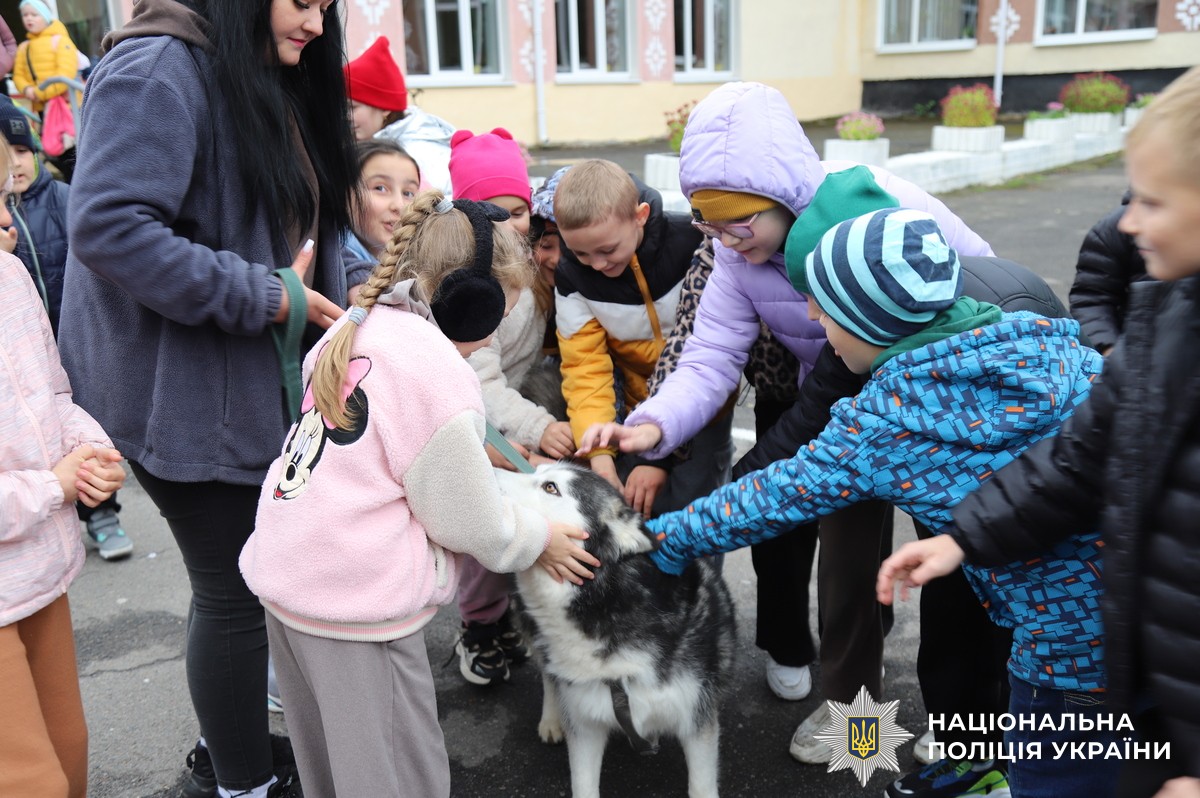 Поліцейські та волонтери завітали до школярів у декілька навчальних закладів і не самі, а з «пухнастою гостею».