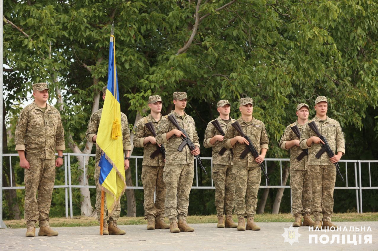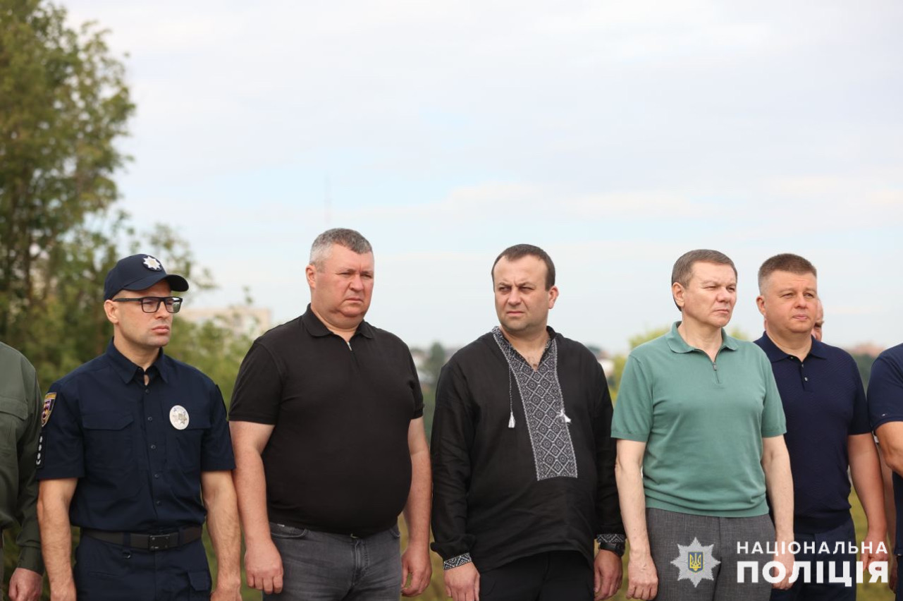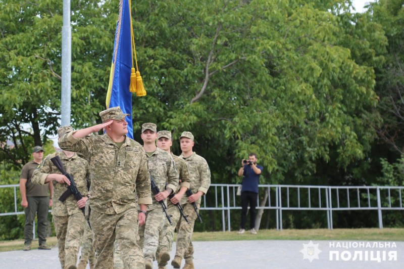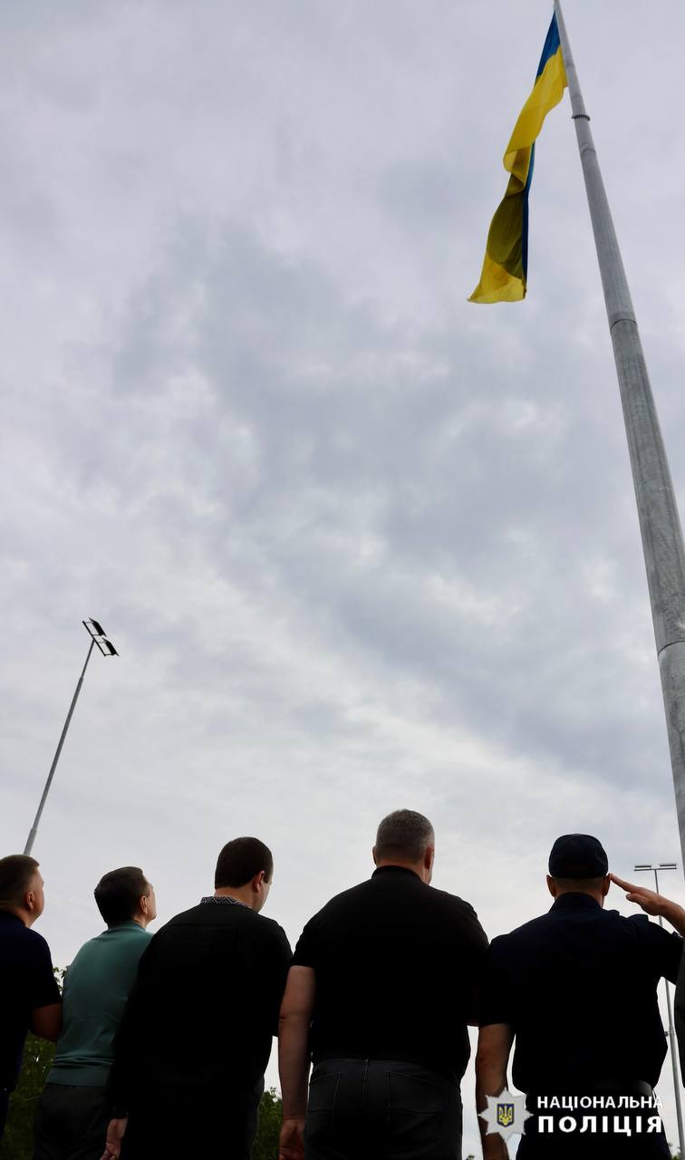 Участь у піднятті прапора взяли і поліцейські на чолі з начальником Головного управління Нацполіції у Вінницькій області.