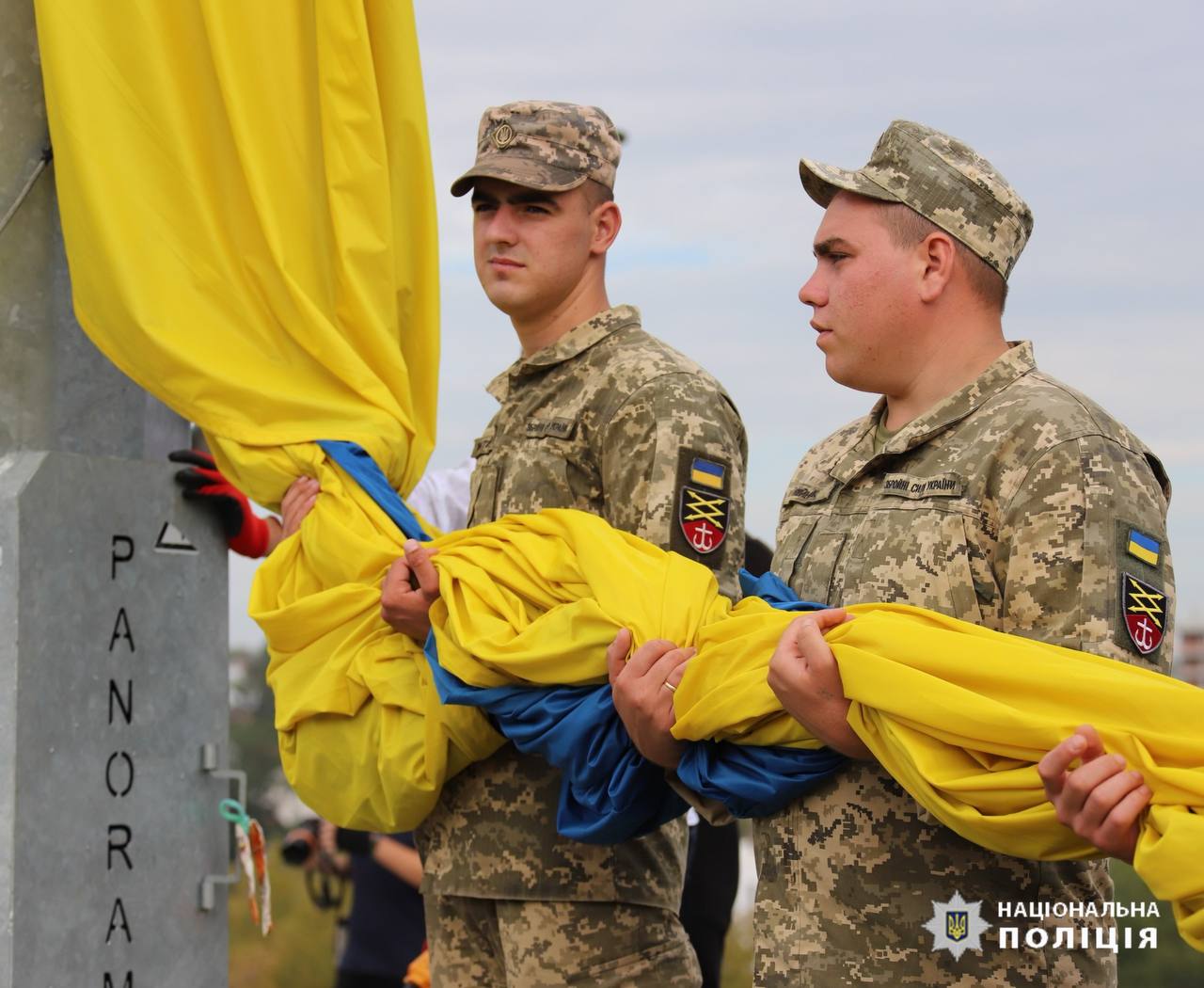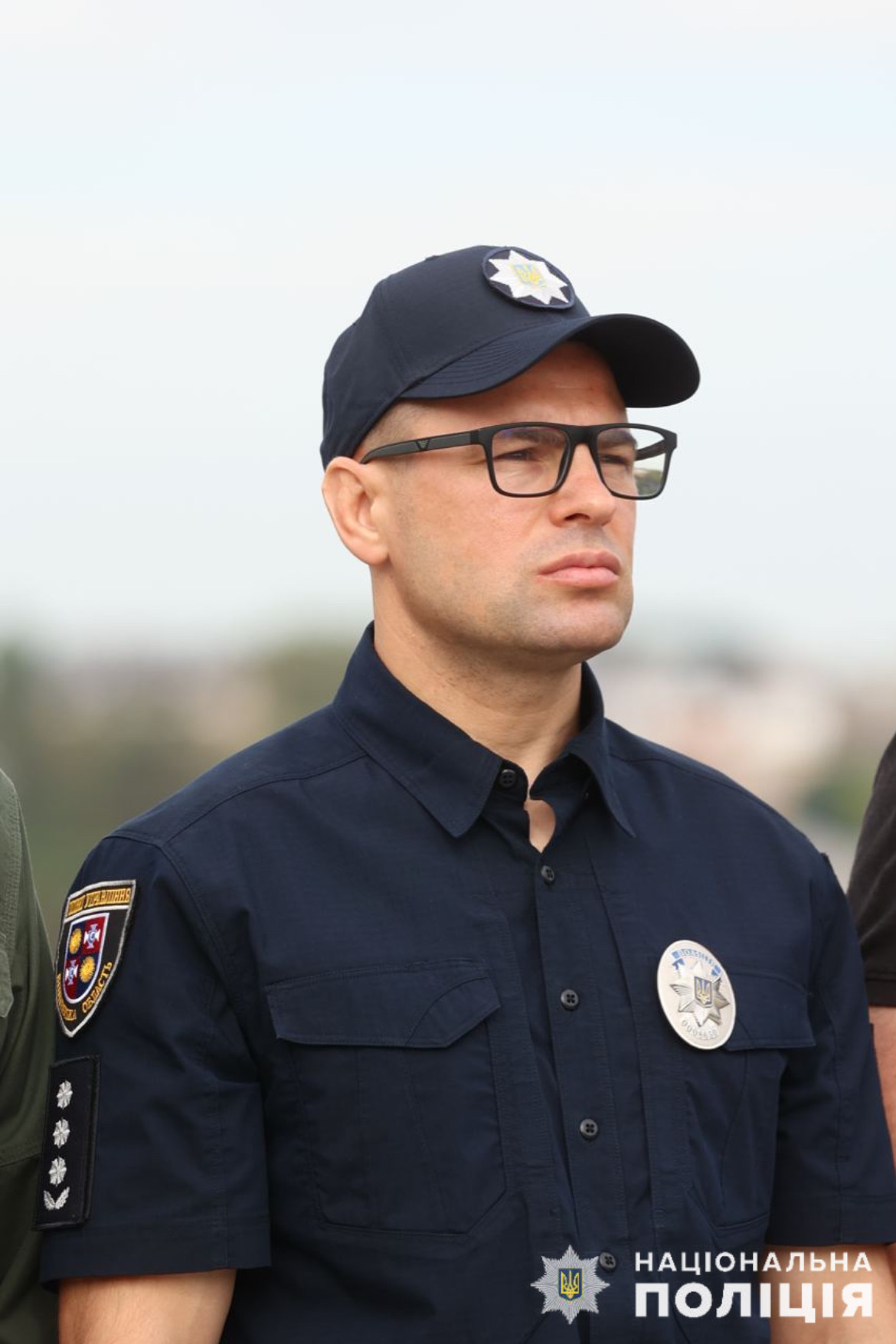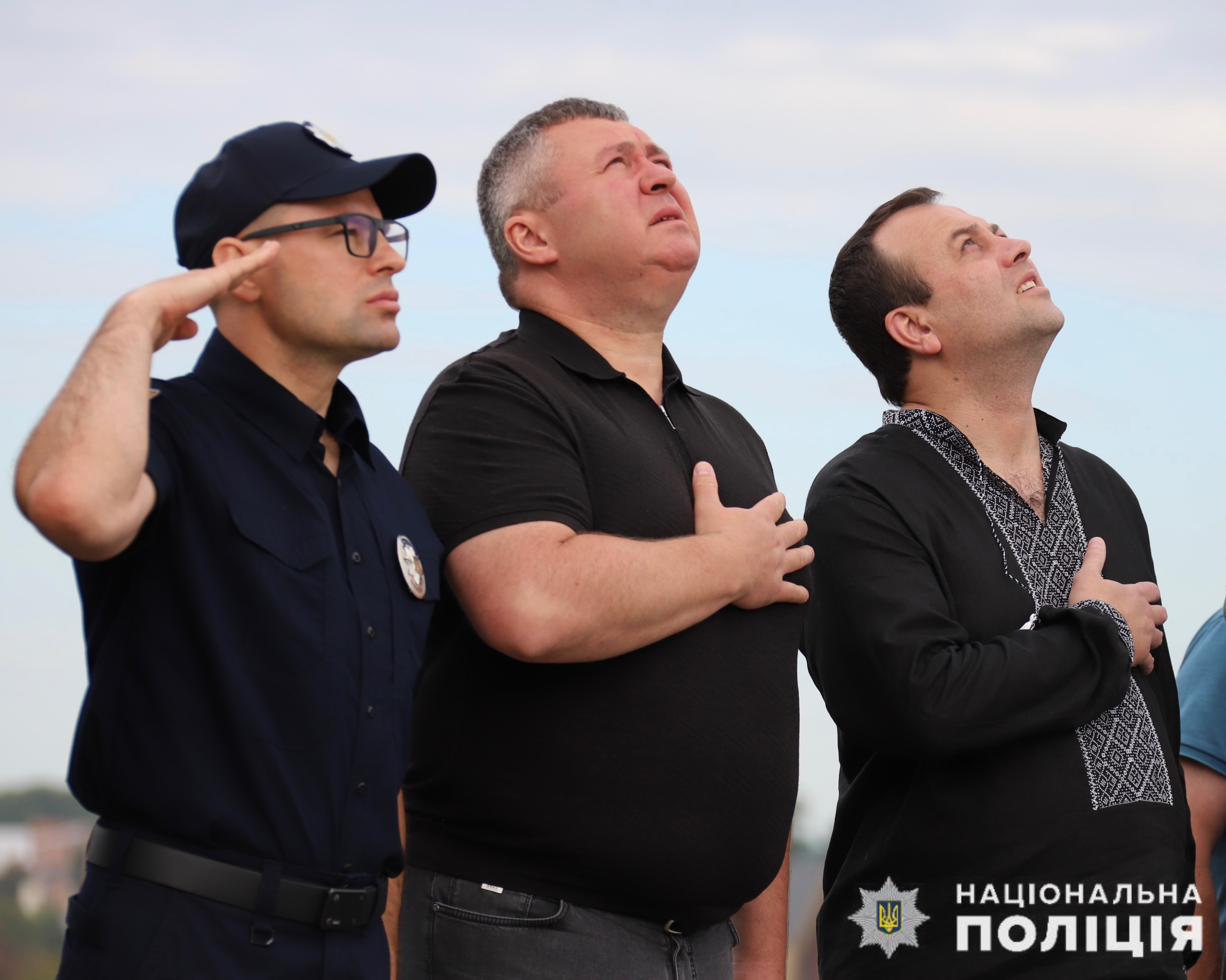 Участь у піднятті прапора взяли і поліцейські на чолі з начальником Головного управління Нацполіції у Вінницькій області.