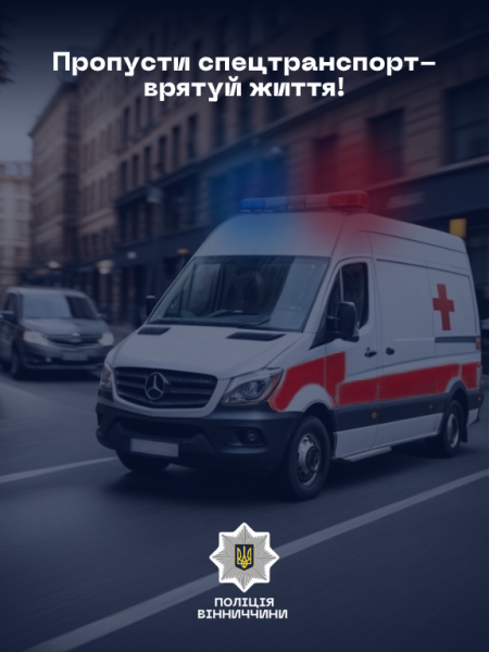 Коли кожна секунда важлива: поліція Вінниччини нагадує про вимогу пропускати спецтранспорт та необхідність дотримуватися правил дорожнього руху