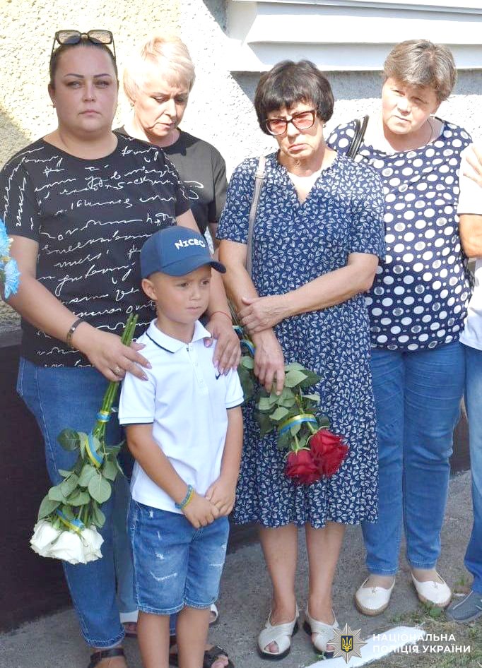 На роковини загибелі поліцейського його родина, друзі, побратими, представники місцевої влади, колеги зібрались аби відкрити меморіальну дошку Герою.