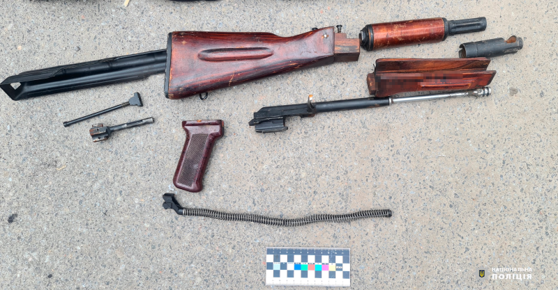 В салоні транспортного засобу окрім водія перебував 36-річний пасажир, мешканець Чернівецької області. Під час перевірки у його речах правоохоронці виявили та вилучили автомат Калашникова в розібраному стані та 45 патронів калібру 5,45 мм.
