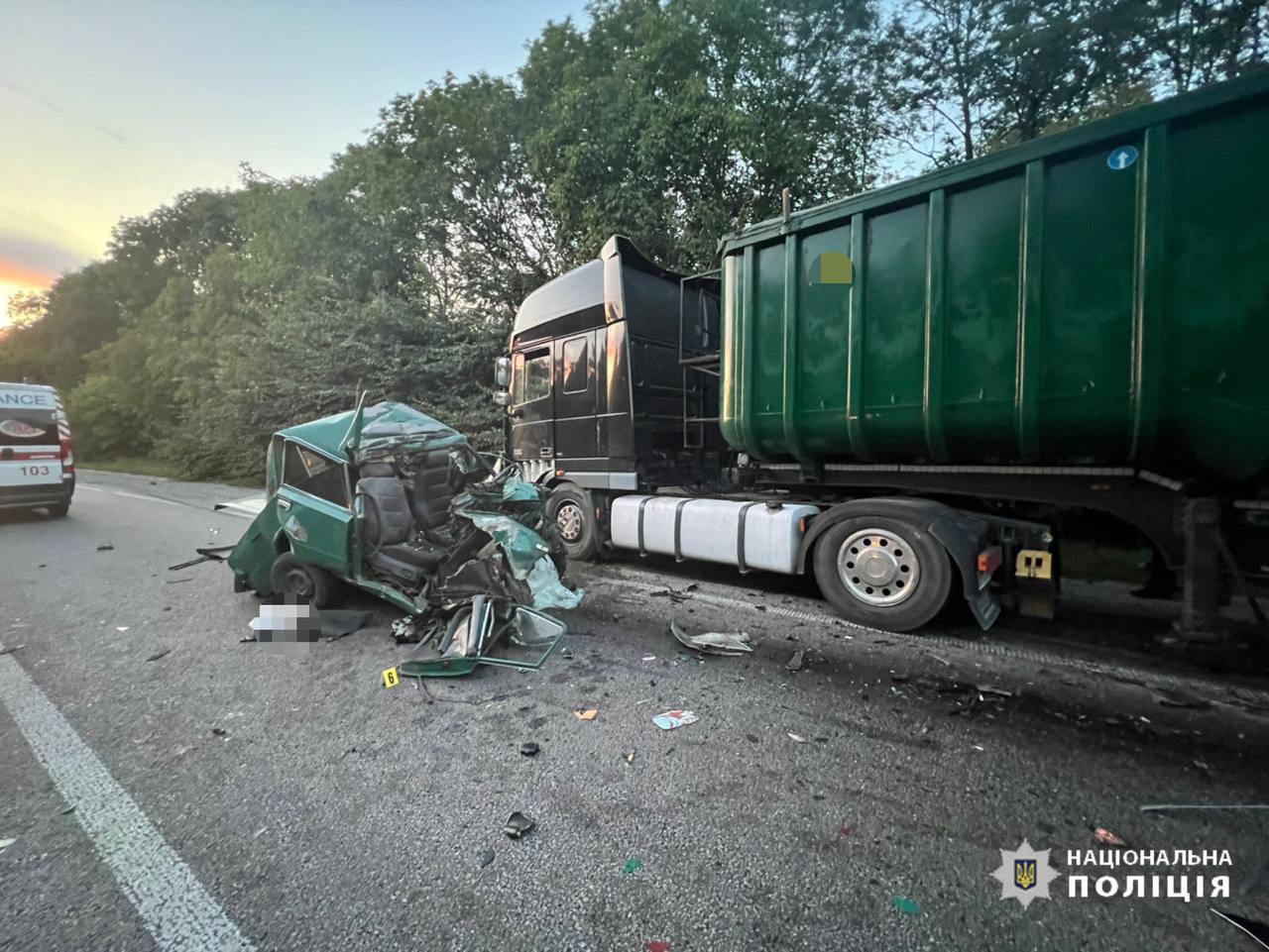 За попередньою інформацією слідства, водій автомобіля ВАЗ виїхав на смугу зустрічного руху, де допустив зіткнення з вантажним транспортним засобом DAF із напівпричепом. Внаслідок ДТП 46-річний житель міста Запоріжжя, який керував автомобілем ВАЗ, отримав травми несумісні з життям.