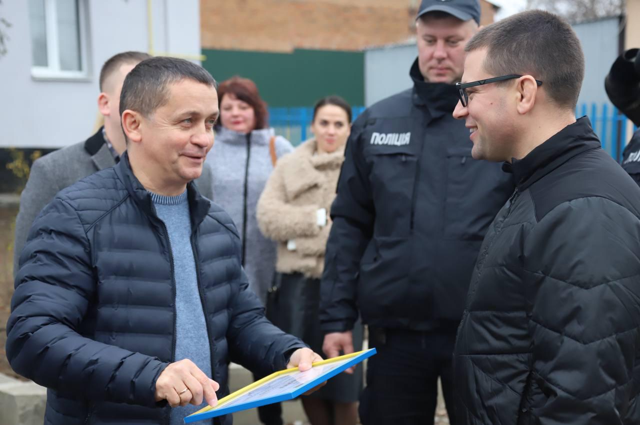 Керівник поліції Вінниччини висловив слова вдячності головам територіальних громад Сергію Сітарському та Віктору Бичкову за плідну співпрацю з органами та підрозділами Національної поліції Вінниччини в рамках проєкту «Поліцейський офіцер громади» та вручив їм подяки.