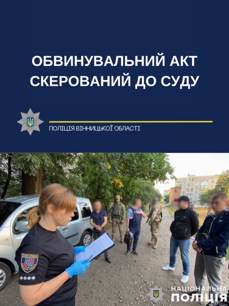 Слідчі Гайсинського райуправління завершили досудове розслідування та передали обвинувальний акт у кримінальному провадженні в суд. Учасники угруповання обвинувачуються у незаконній організації, порубці, перевезенні, зберіганні та збуті лісу (ч. 3 ст. 27, ч. 3 ст. 28, ч. 4 ст. 246 та ч. 2 ст. 27, ч. 3 ст. 28, ч. 4 ст. 246 ККУ), за що ризикують провести за ґратами до семи років.