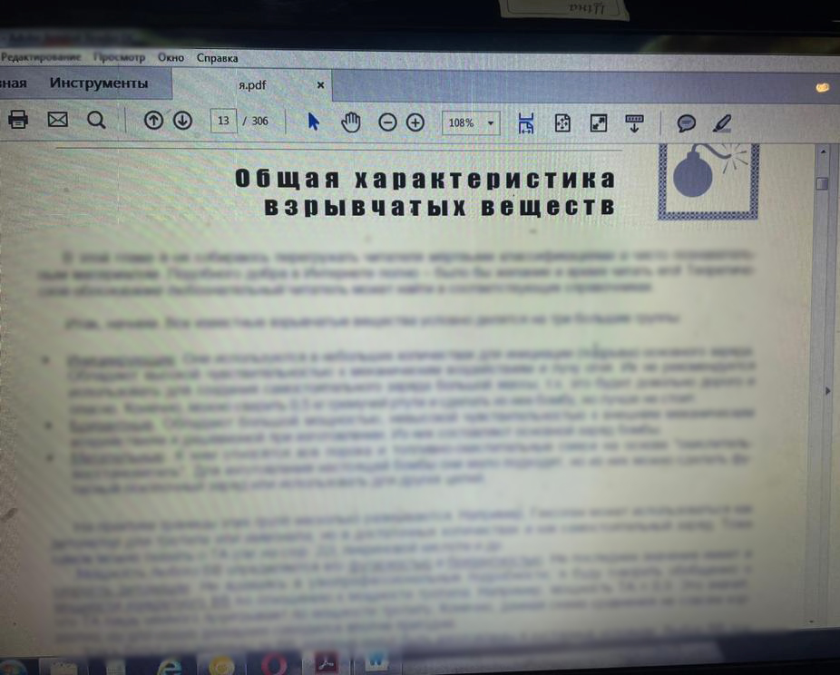 Працівники внутрішньої безпеки НПУ та поліції Вінниччини провели за місцем мешкання зловмисника невідкладний обшук. Під час заходу вилучили комплектуючі для виготовлення кустарного вибухового пристрою, а у комп’ютері 40-річного чоловіка виявили контент з характеристиками вибухових речовин та інструкцію із виготовлення вибухівки.