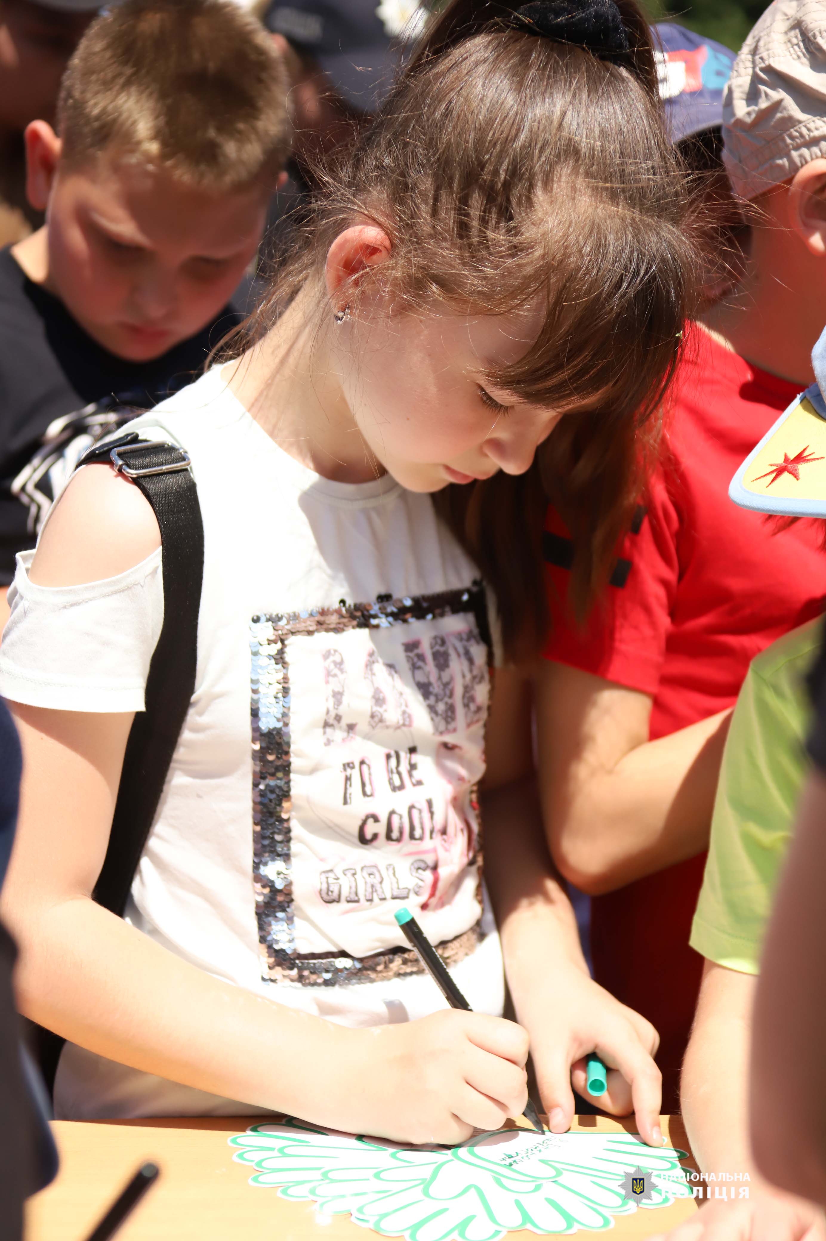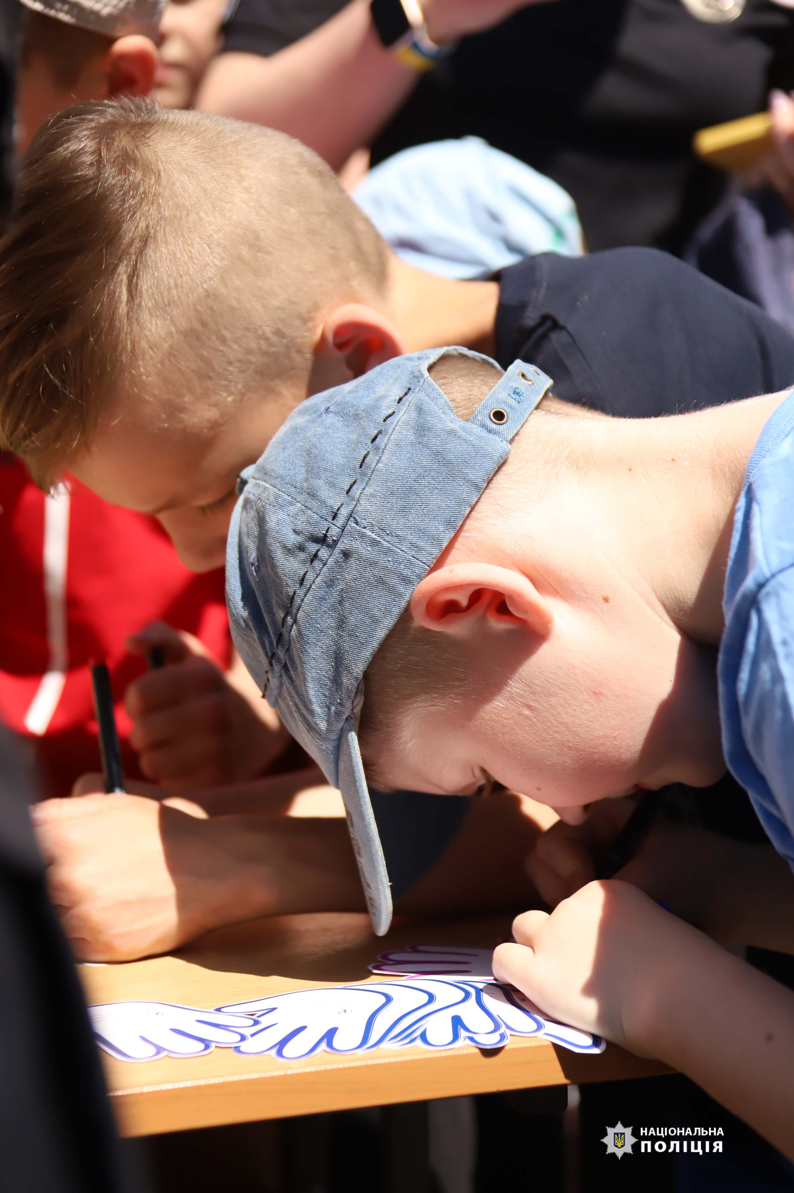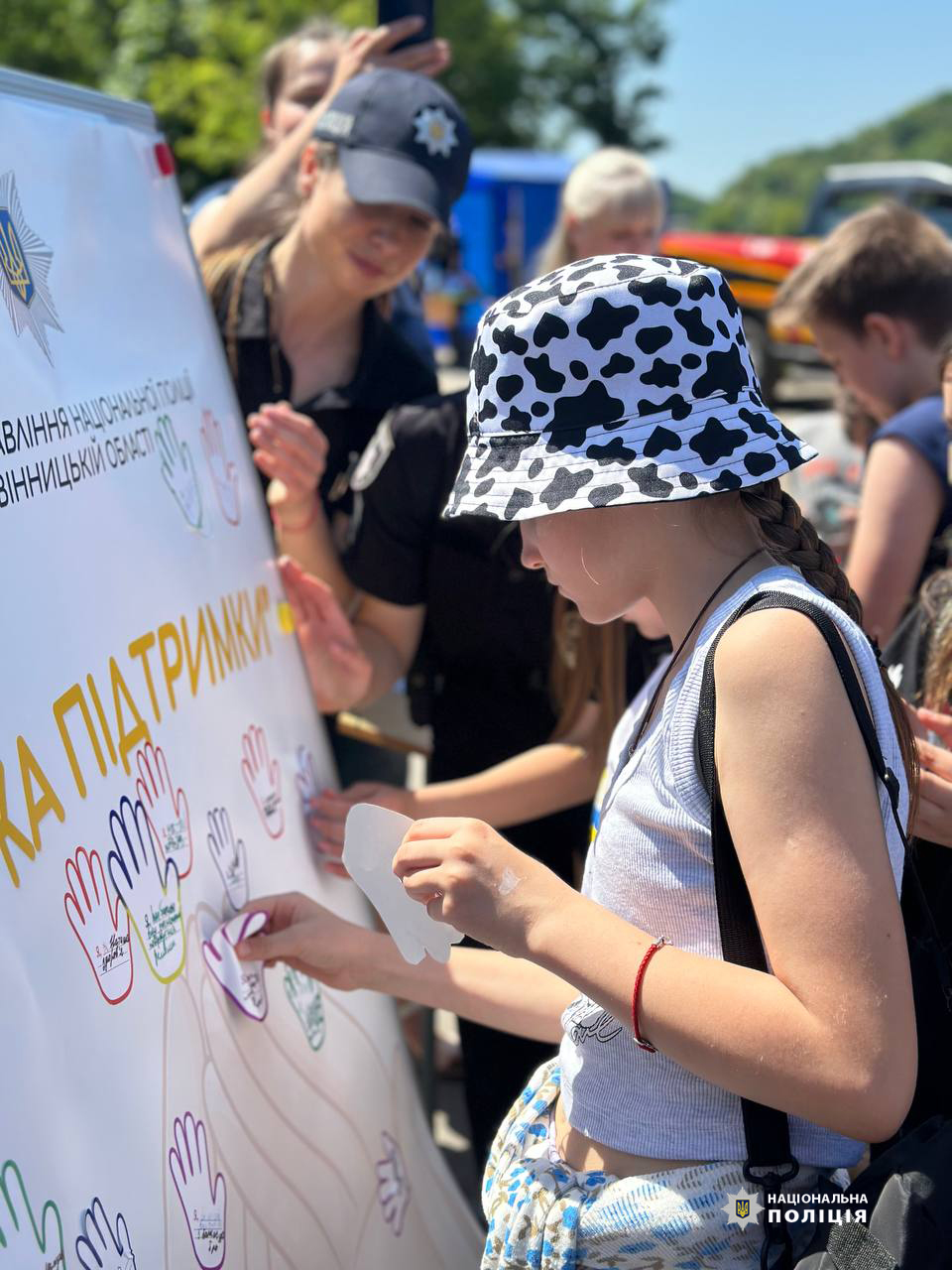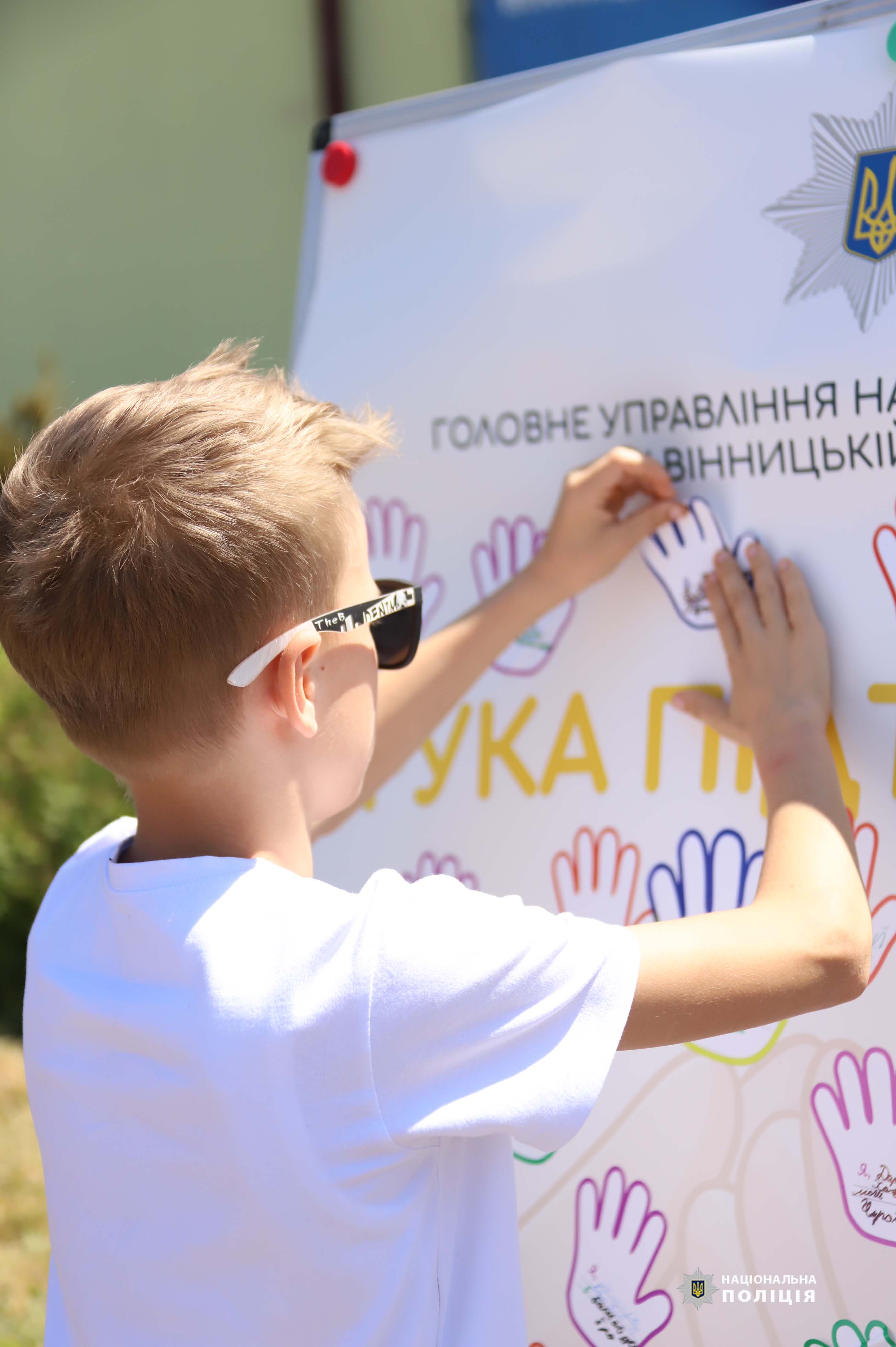 Аби подякувати кожному хто стоїть на захисті, діти разом із начальником обласної поліції Іваном Іщенком, написали на паперових долоньках свої імена та побажання для наших захисників. Поліцейські пообіцяли дітям зробити для них найцінніший подарунок - доставити ці долоньки до наших Захисників, подарувати їм дитячу енергію та віру у нашу Перемогу.