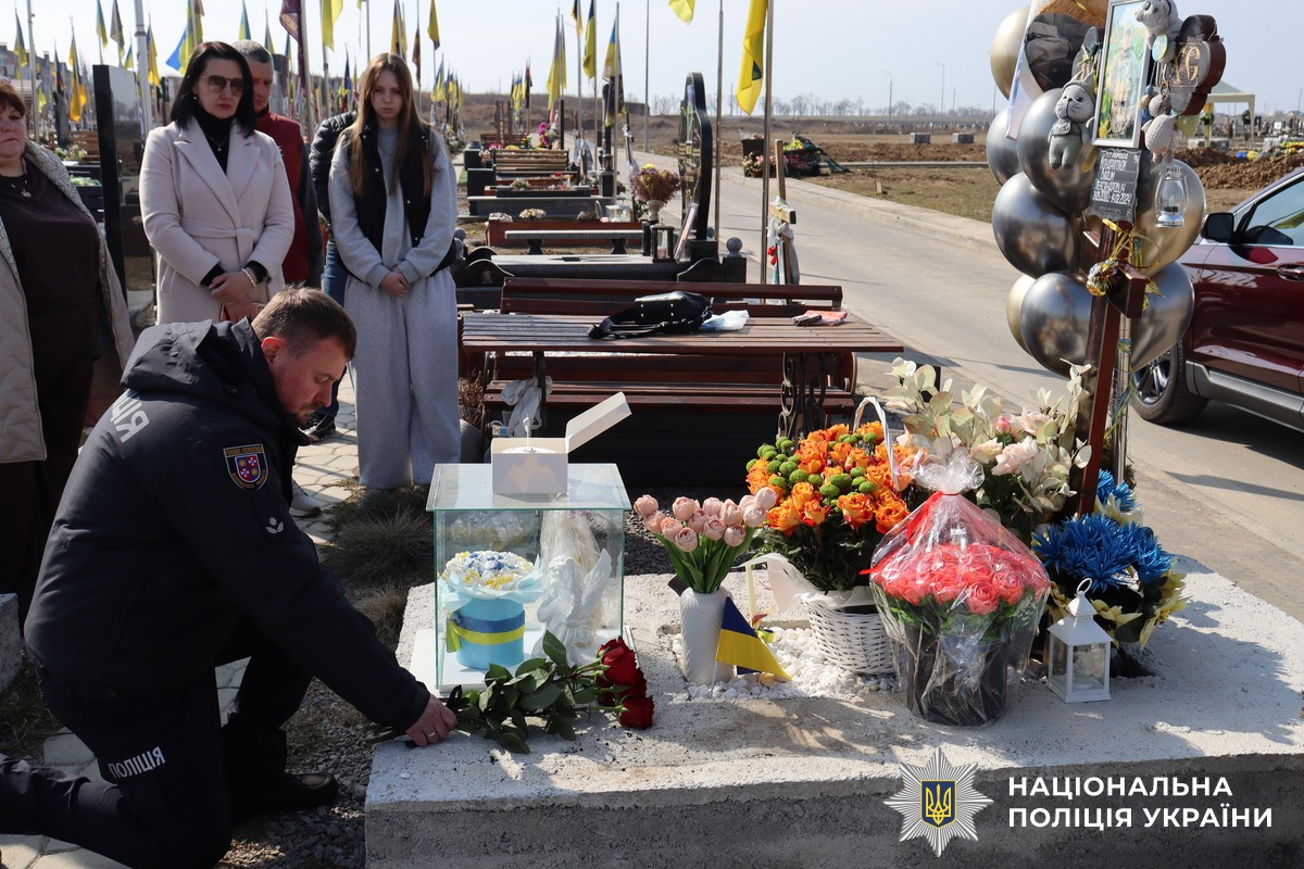 У День народження поліцейського вшанувати пам’ять Героя прийшли колеги та рідні.