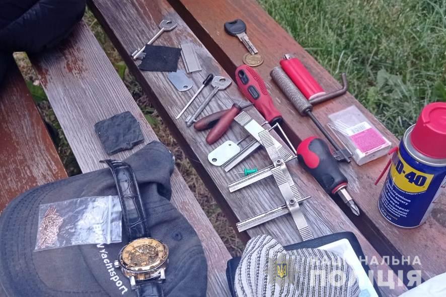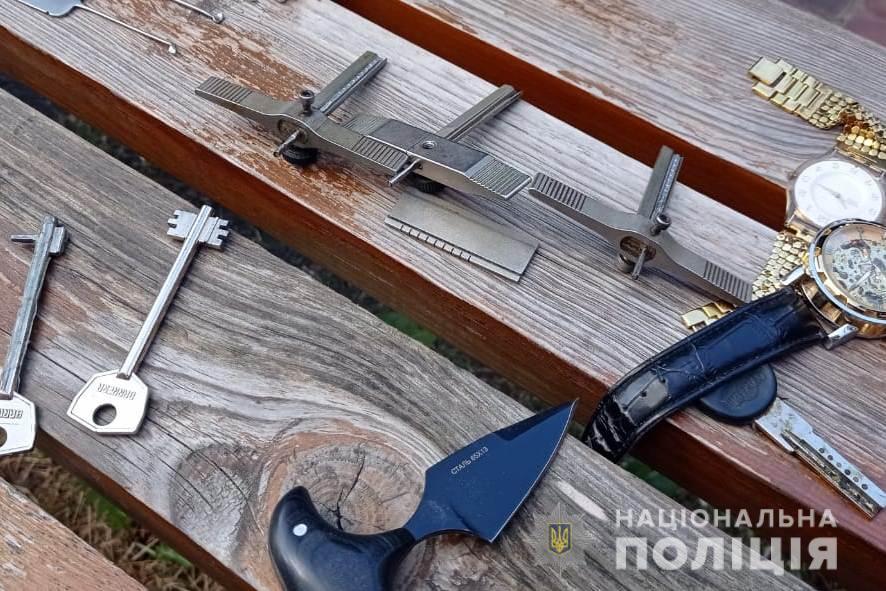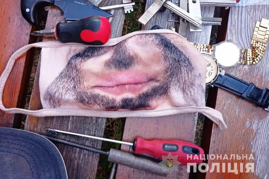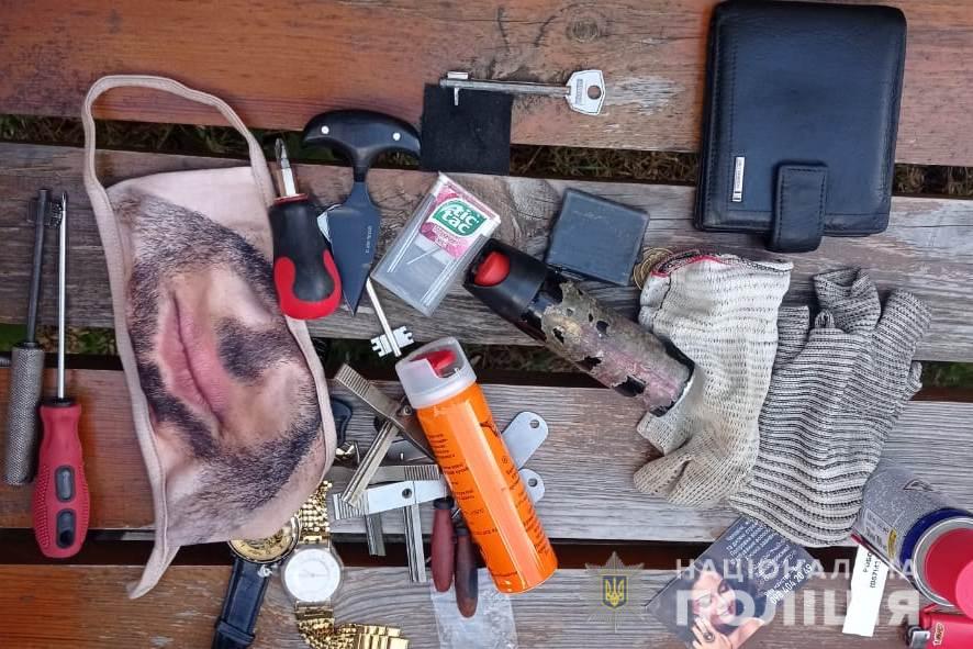 У затриманого вилучили набір відмичок, викраденні з помешкання вінничан золоті прикраси, декілька балончиків з перцевим газом, рукавички, ніж та маску.