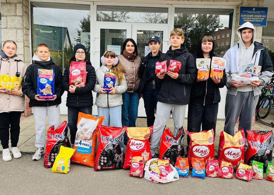 Поліція та учні Барського ліцею №2 провели благодійну акцію на підтримку безпритульних тварин