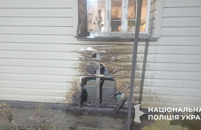 На місце події слідчо-оперативна група Відділення поліції №1 Хмільницького райуправління поліції провела необхідні процесуальні дії, під час яких виявили пляшку із залишками запальної суміші.