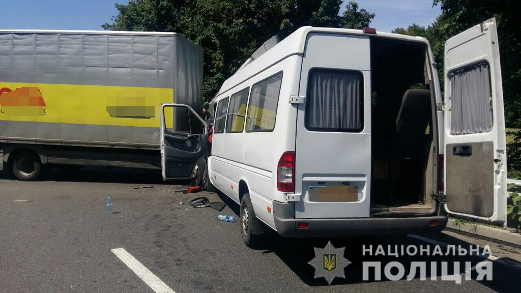 Поліція встановлює обставини аварії за участі рейсового мікроавтобусу та вантажівки