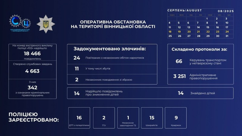 Результати роботи поліції Вінниччини за минулий тиждень