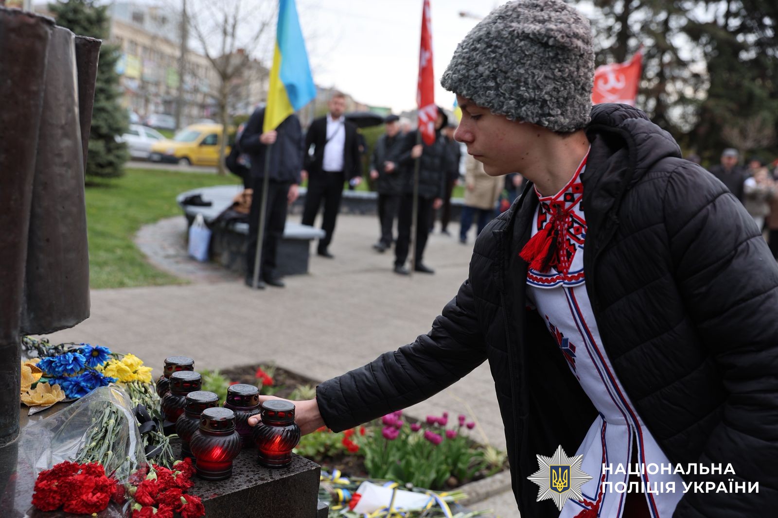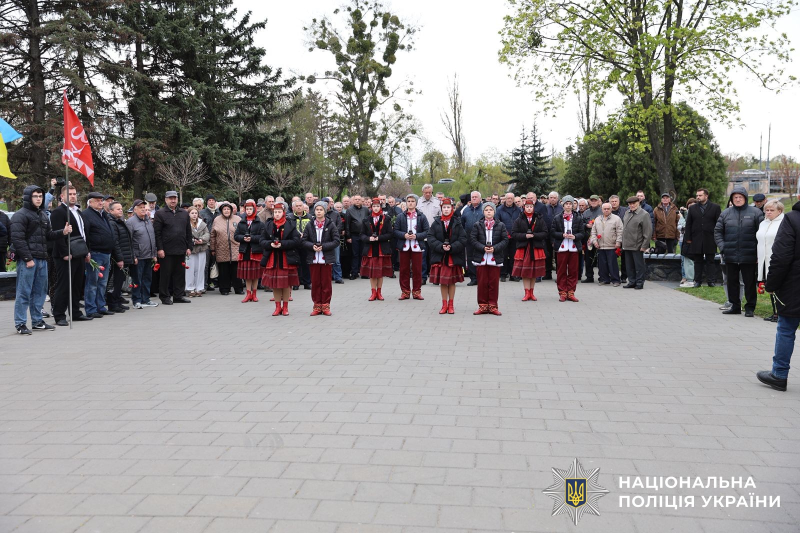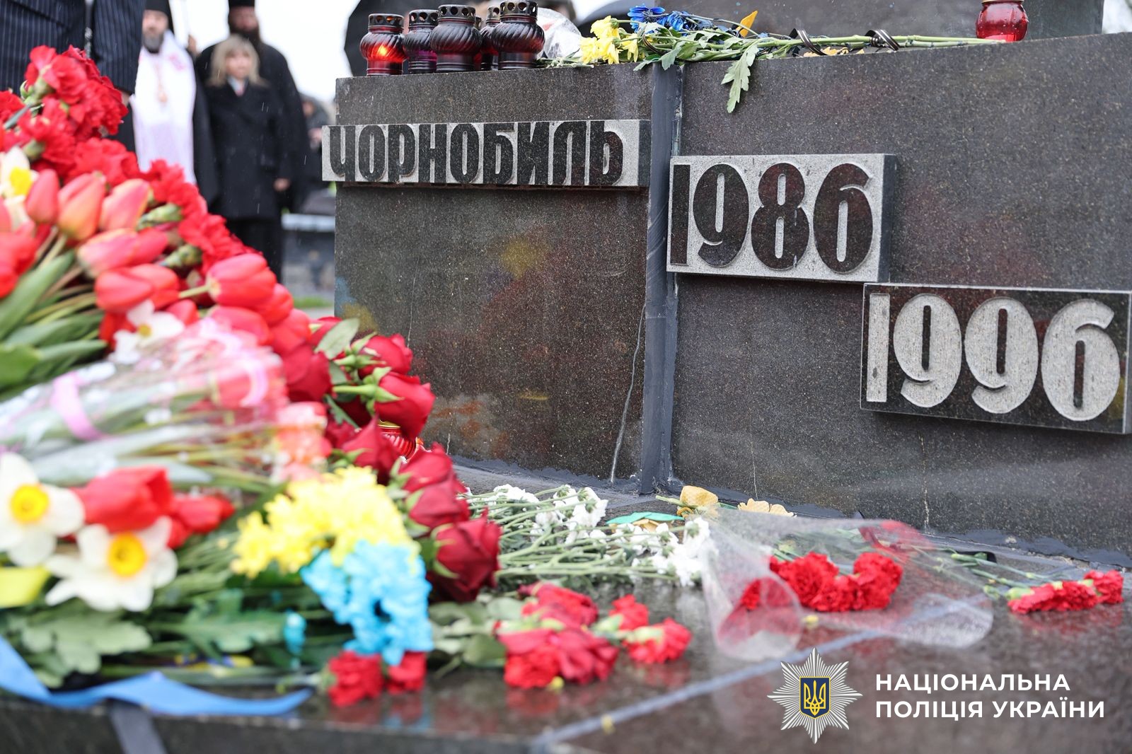 Заступник начальника ГУНП у Вінницькій області Віктор Ковальчук разом з очільниками органів місцевої влади, правоохоронцям, ліцеїстами МВС та вінничанами схилили голови та вшанували хвилино мовчання пам'ять ліквідаторів наслідків аварії.