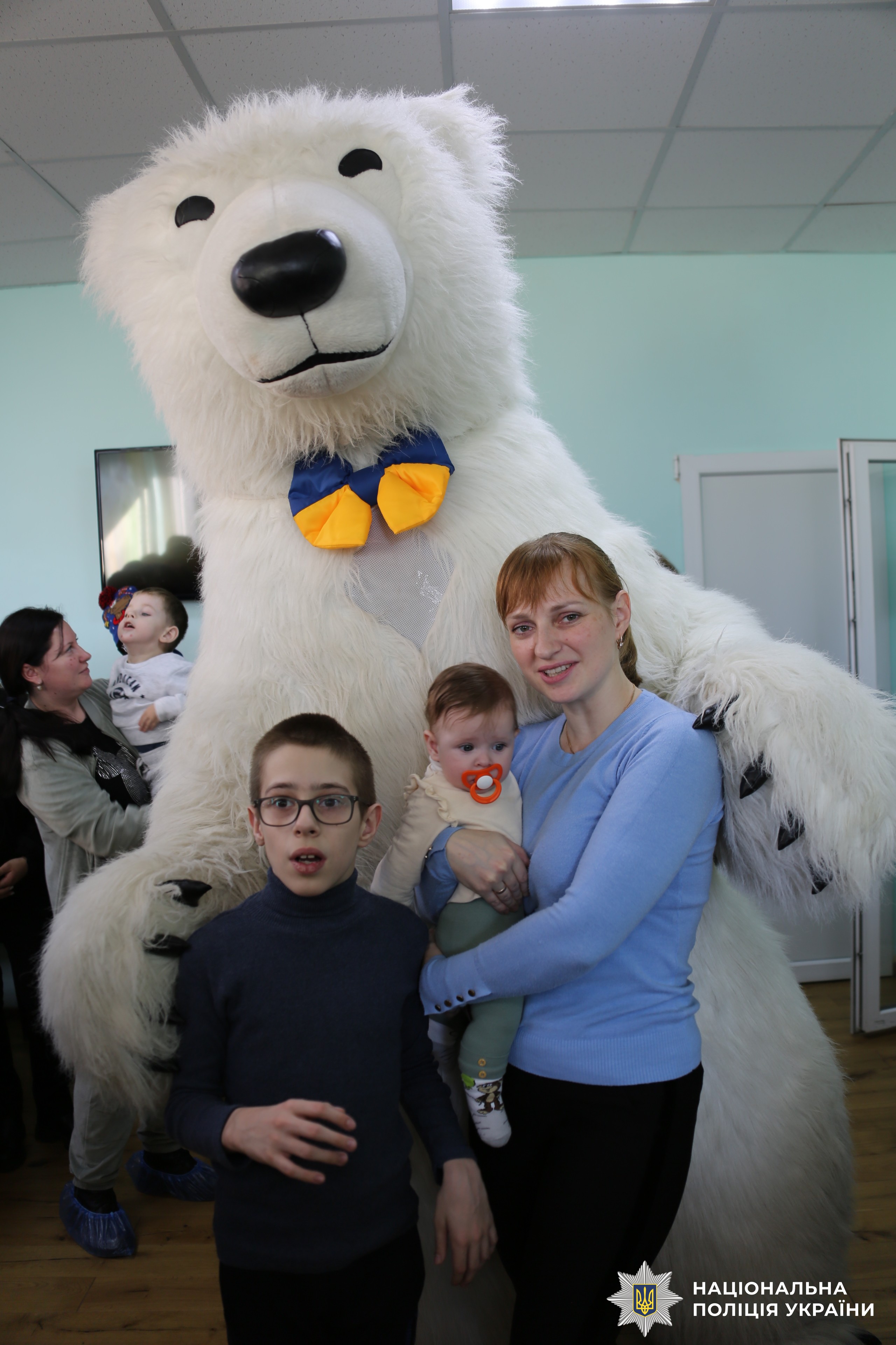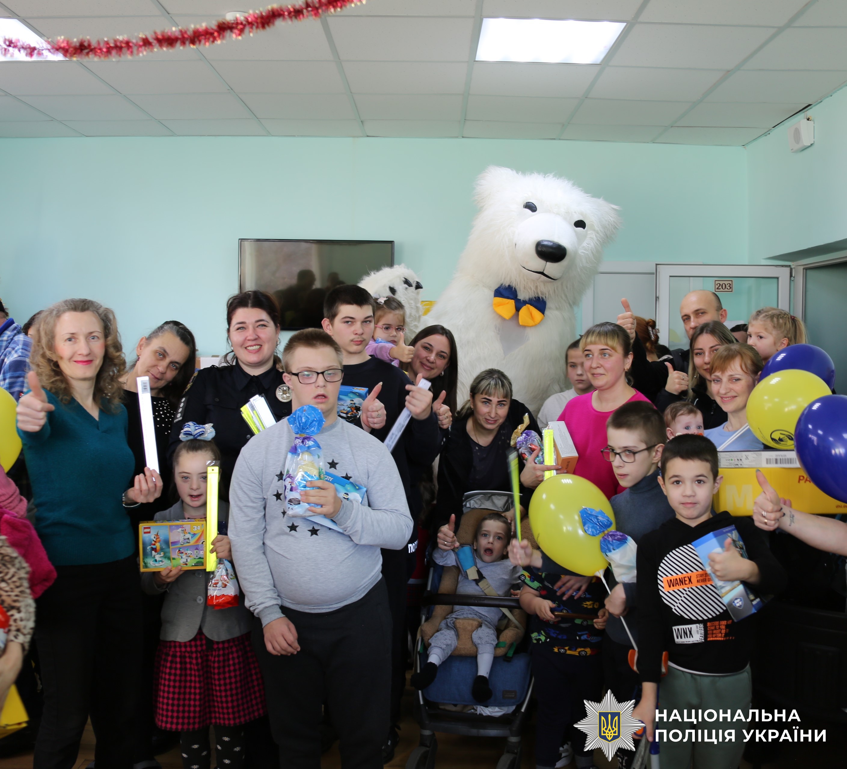 Також вінницькі поліцейські запросили до малечі казкового персонажа. Дітки разом з аніматором танцювали та весело проводили час. Наприкінці заходу правоохоронці спільно з волонтерами, які прибули з Німеччини, вручили вихованцям центру солодощі та презенти.