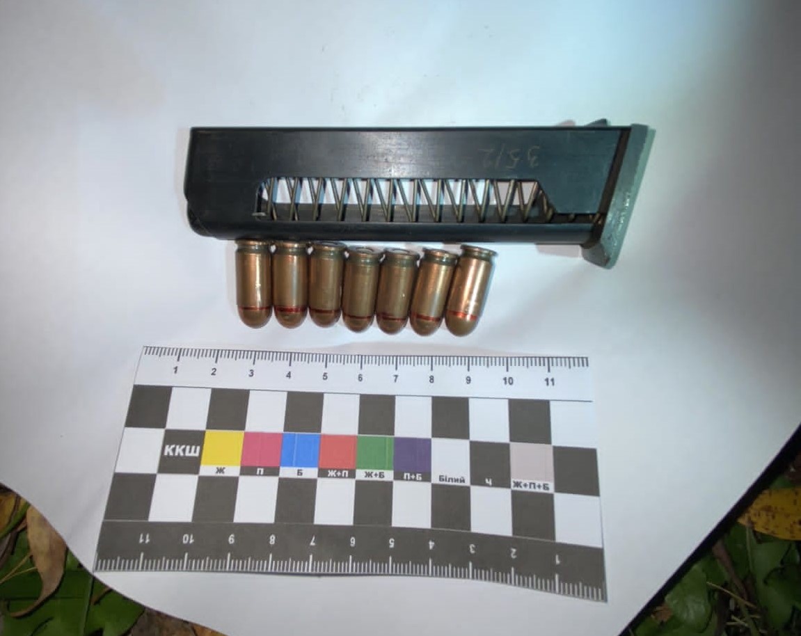 За кілька хвилин поліцейські розшукали зброю у траві неподалік місця вчинення правопорушення.