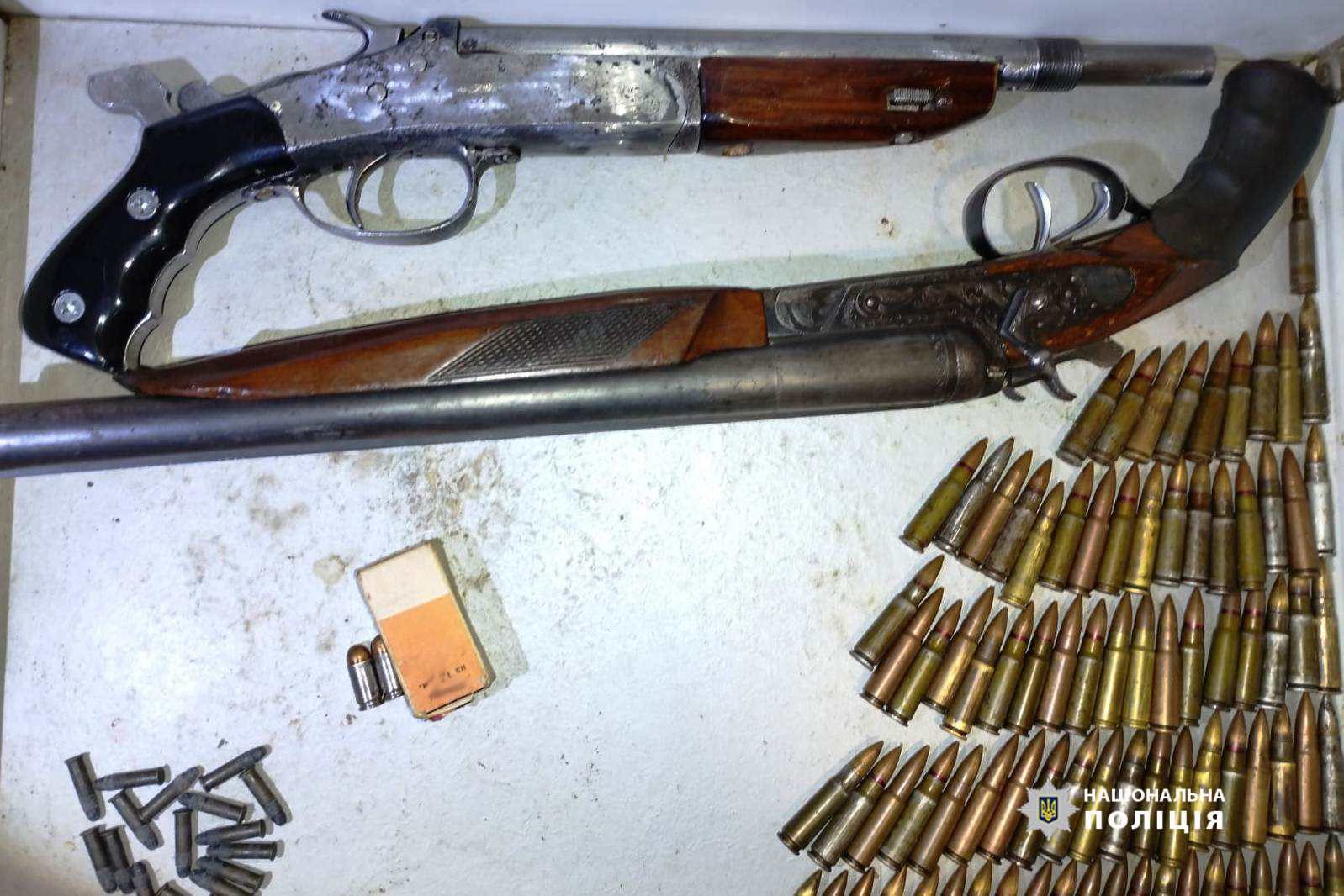 За результатами проведених процесуальних дій у зловмисників поліцейські вилучили близько трьох сотень патронів різного калібру до стрілецької зброї, два обрізи, рушницю, саморобний пристрій для відстрілу 9 мм набоїв. Слідчі встановлюють мету зберігання вилученого.