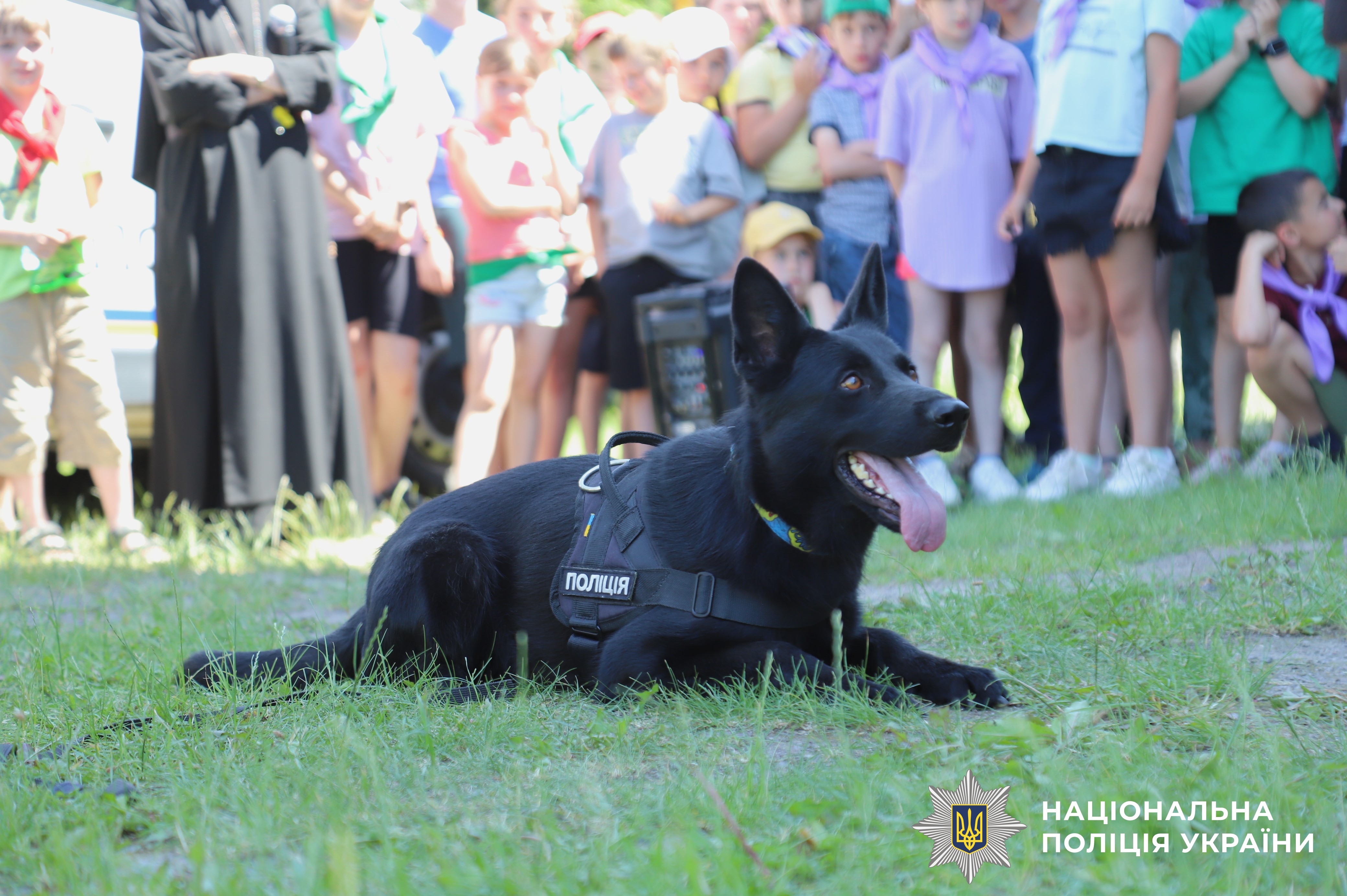 Кінологи привели своїх службових собак, які продемонстрували вміння знаходити предмети та слухати команди.