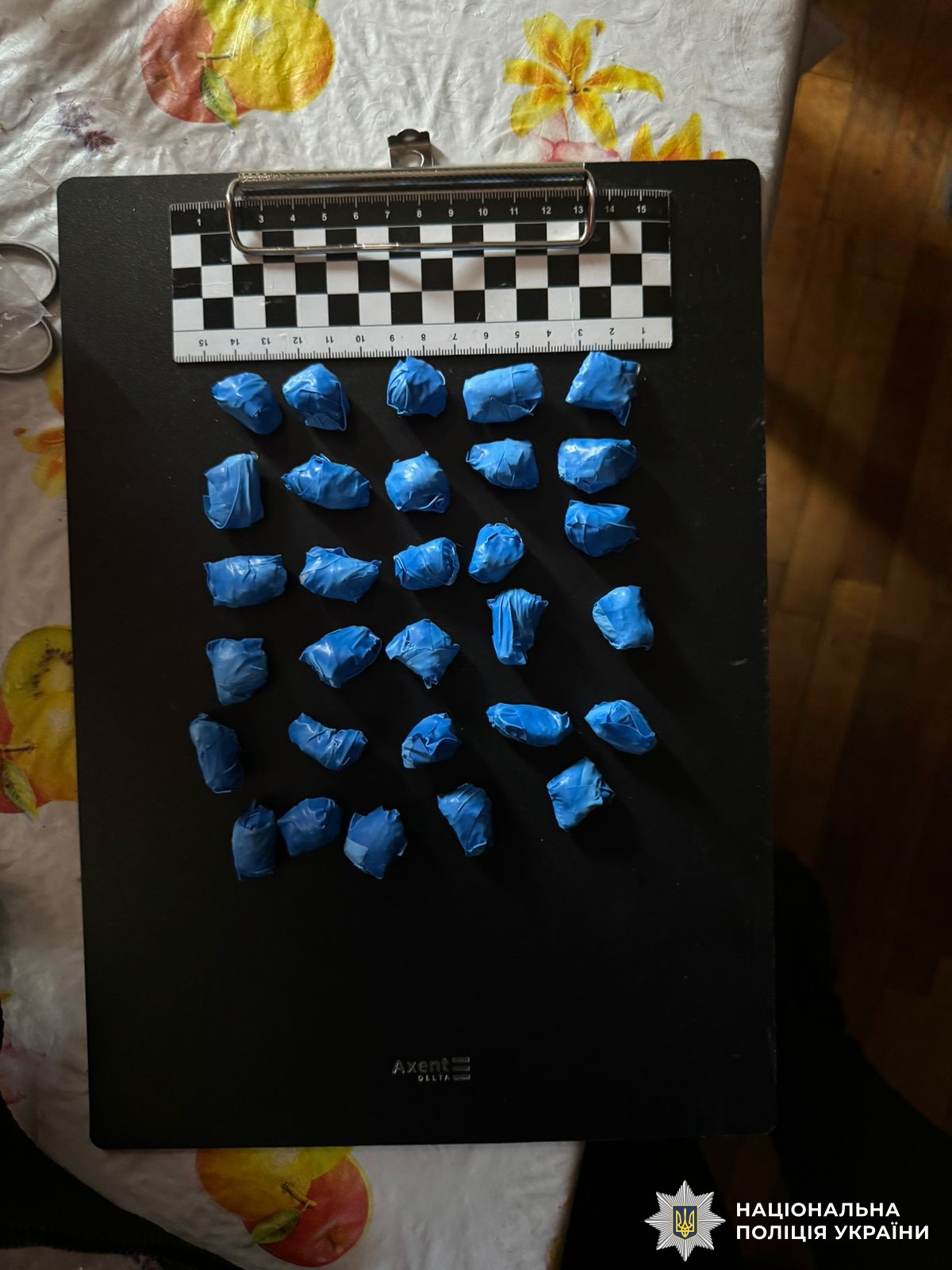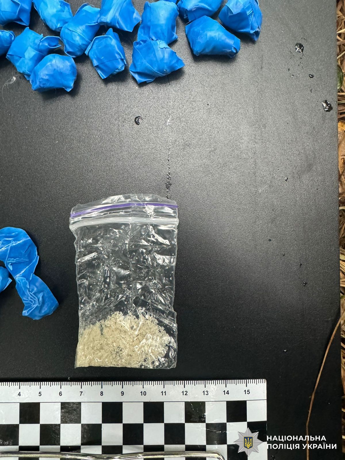 17 липня ПОГи відділення поліції №1 Вінницького районного управління біля озера по вул. Пирогова побачили молодика, котрий саме розкладав наркозакладки. У зловмисника виявили згортки з PVP-сіллю, а в ході невідкладних слідчих дій в його квартирі – також замотані клейкою стрічкою закладки з кристалічною речовиною білого кольору. Крім цього, правоохоронці вилучили у фігуранта мобільний телефон з фото місць розташування схованок із психотропами, які він встиг розкласти по місту. Усі схованки поліцейські знайшли та вилучили загалом 51 закладку.