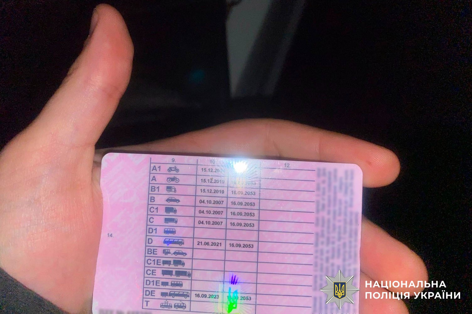У ході спілкування поліцейські помітили у керманича ознаки алкогольного сп’яніння. Від освідування чоловік відмовився. Під час документування адміністративного правопорушення керманич надав правоохоронцям посвідчення водія з ознаками підробки.